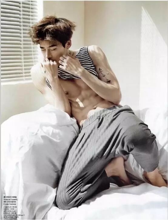首先身材条件优越,宽肩窄腰,皮肤白皙,还有一副大长腿。