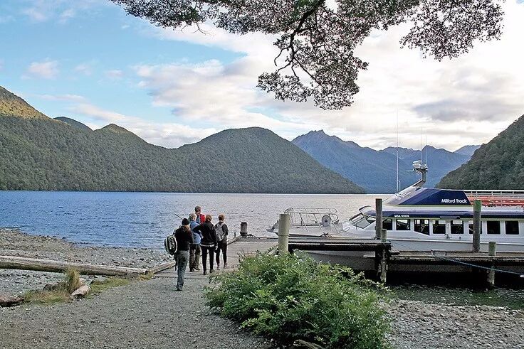 在蒂阿瑙和导游汇面,乘大巴抵达Te Anau Downs。乘船穿过蒂阿瑙湖来到米尔福德步道起点,途中享受一杯热饮。