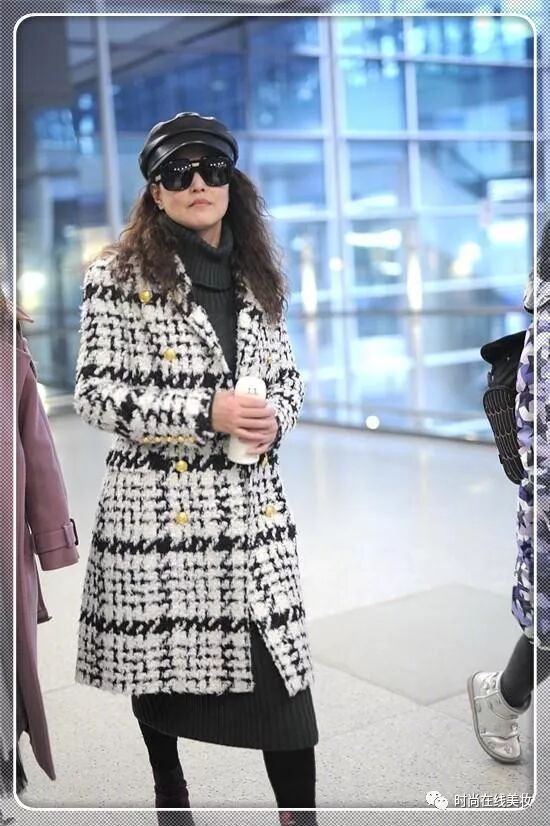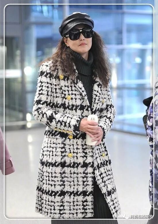 周海媚真是人老心不老,每次看见她亮相机场的时候,那打扮的都是特别的时髦。这次出现在机场里的时候,周海媚就是穿了一件黑色的毛衣裙,外面罩上了一件格纹大衣,头上还戴了一顶黑色的报童帽,真是别提多减龄了。