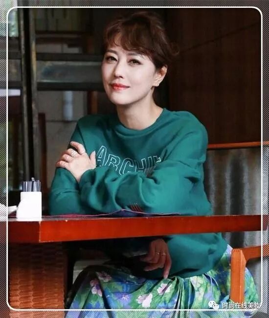 下面搭配上一条印花百褶裙,这种略微有些暗沉的配色其实非常适合周海媚这个年龄,既不浮夸,又让周海媚显得大气优雅。