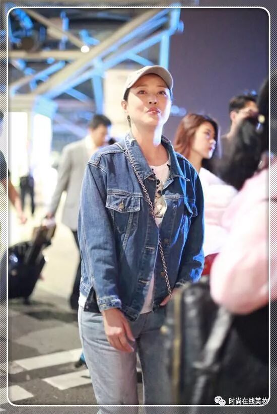 白色的印花T恤外罩上了一件短款的牛仔外套,下面又搭配上了一条浅色的牛仔长裤,这种牛仔的搭配,穿在周海媚的身上,真是让她显出了青春活力的一面。