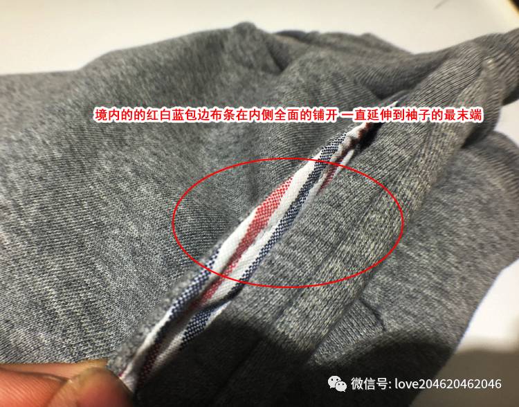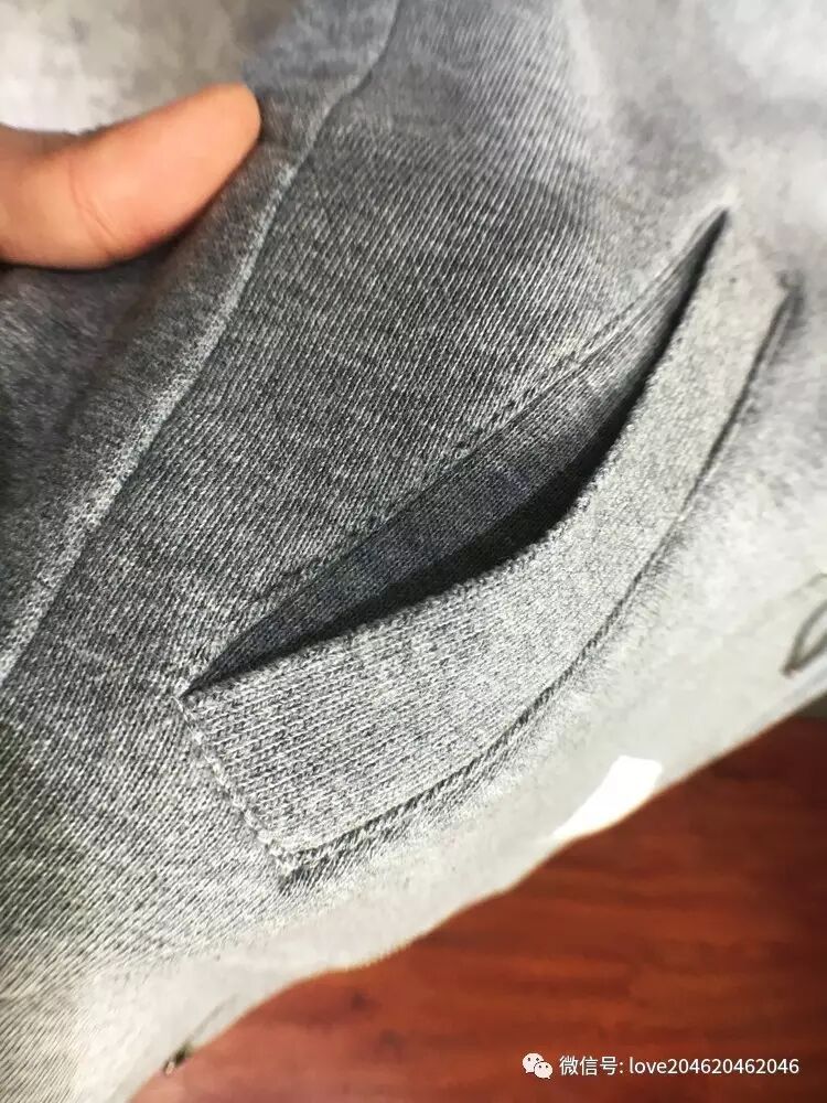 一般的低仿卫衣,在做tb这个袖子这款儿的时候,因为面料是现成市面买的面料,所以这块儿会做成染色或者用别的面料替代,呈现出的感觉和正品的符合度,或者说是一体感很差。