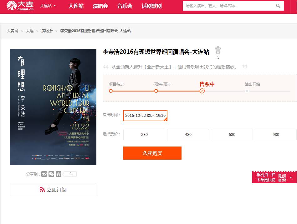 抢票方式:大连鸿烨文化公众号、大麦网、微票儿。迷妹们约不