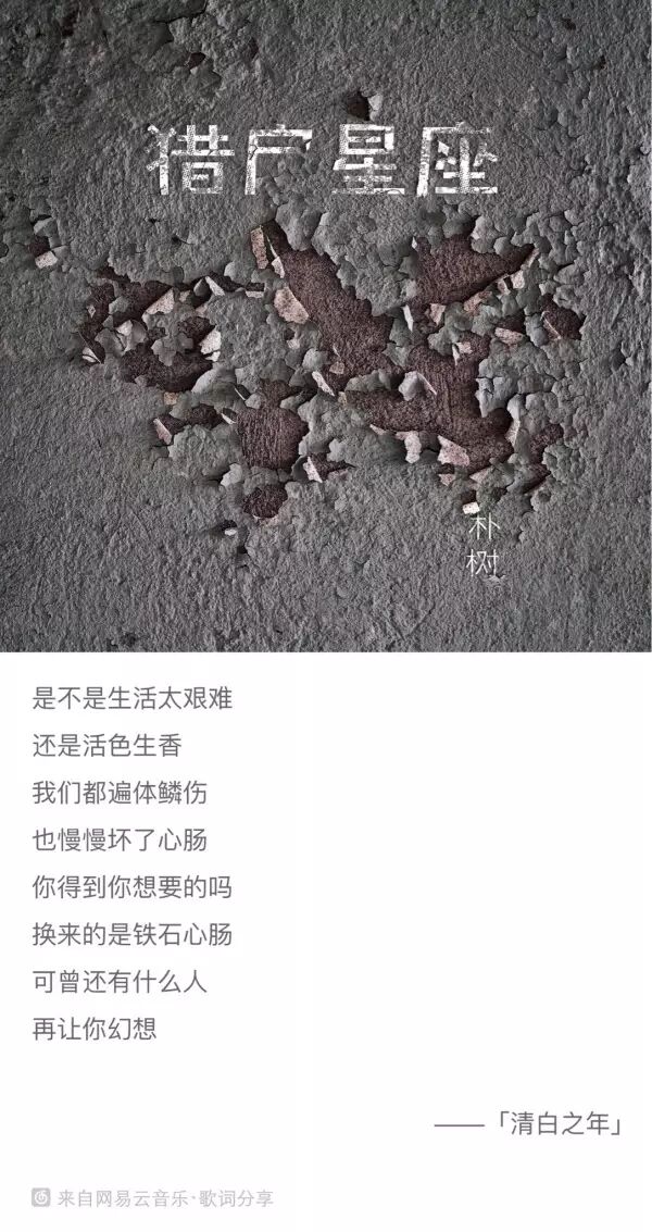 4月底,朴树的全新数字专辑《猎户星座》在网易云音乐开启独家预售,全新专辑单曲《清白之年》首度曝光。