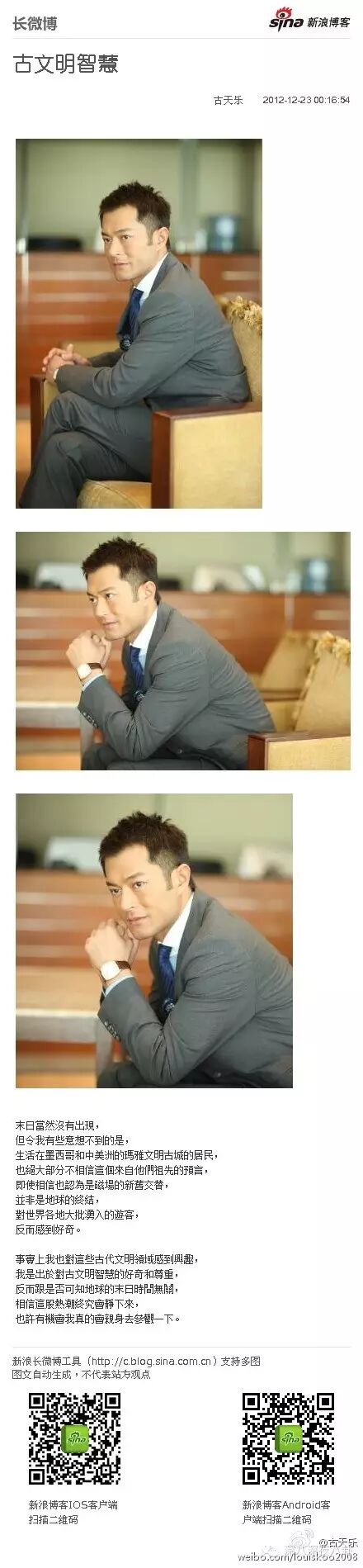然后就到了12年。。。注意!!!12年古天乐终于学会使用长微博了。。。似乎也尝到了甜头,,然后。。。每一天都是长微博,