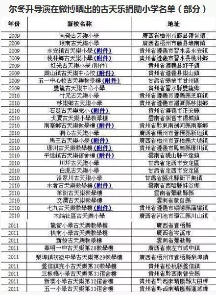 很多时候,我们也知道明星做慈善都是装装样子。。但古天乐这个是实实在在盖小学啊!!!!!每一个都能找到!!!当时看到尔冬升贴的名单。。还只是部分,,真的是要惊呆了。。