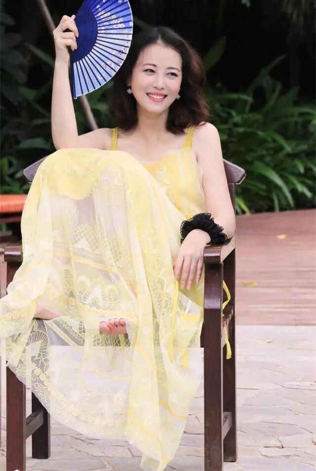 瘦的时候,周海媚身穿黄色吊带连衣裙,看起超美,这颜值也是没谁能比的了,笑起来总是那么的阳光灿烂。