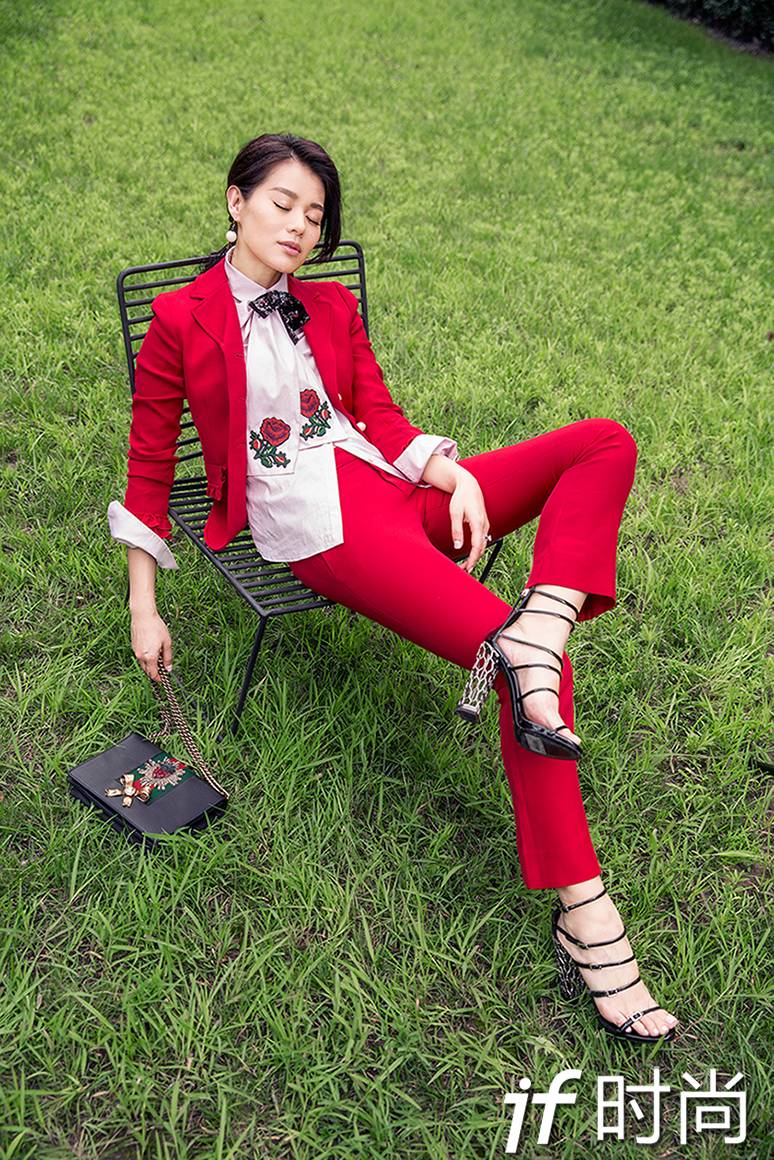 ▲而如何让自己是霸道总攻而不是纯粹女汉子,这里就需要注意度的把握了。比如西装选择红色,配饰选择简单款钻戒。