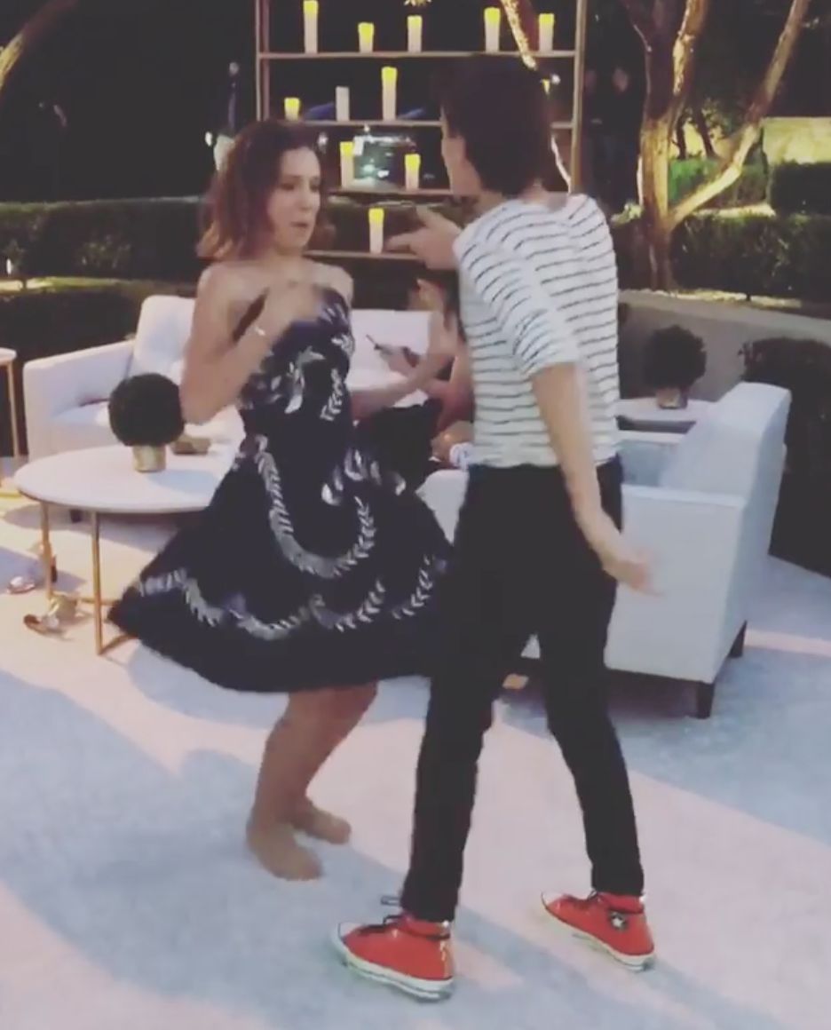 参加Emmy 颁奖晚会,与朋友schnipper兴奋共舞