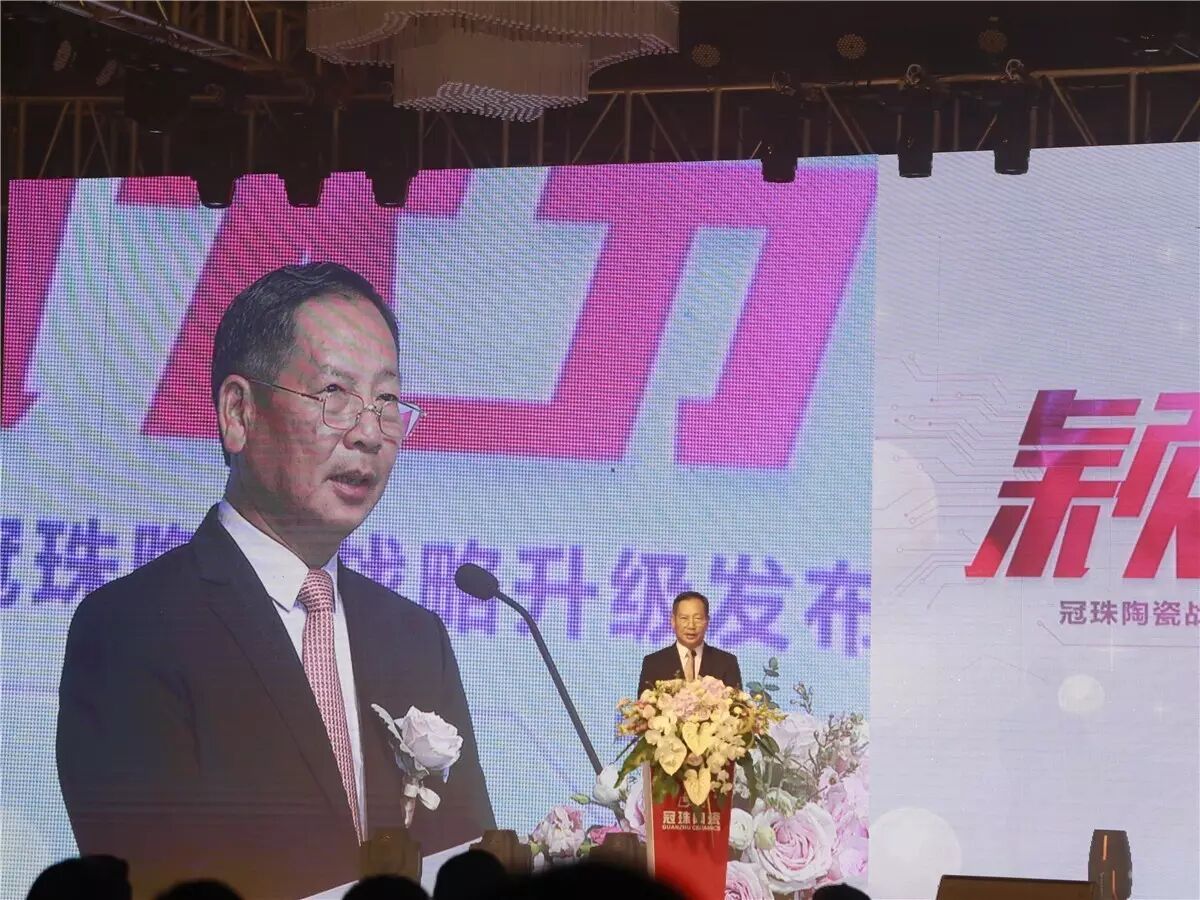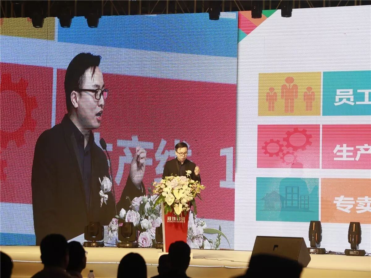 [ 冠珠陶瓷市场总监李尧对关注陶瓷的发展以及新品特征致辞 ]