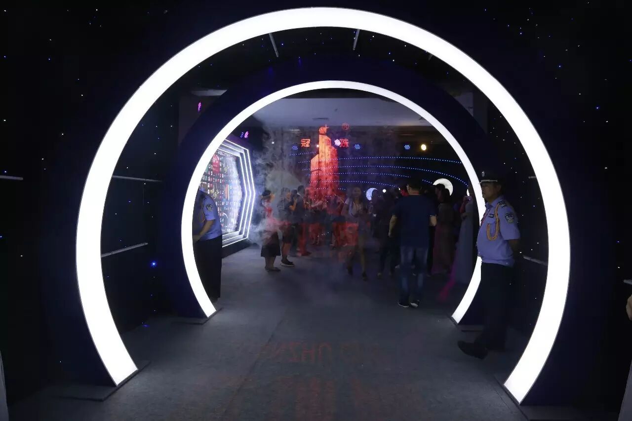 小编一到现场,第一感觉就是高档的梦幻蓝,大门的末端,烟雾和灯光的共同效果下,冠珠陶瓷的LOGO清晰显现,一开始小编以为是层薄纱,直至特意从中间穿过,才相信这技术,又涨姿势了~