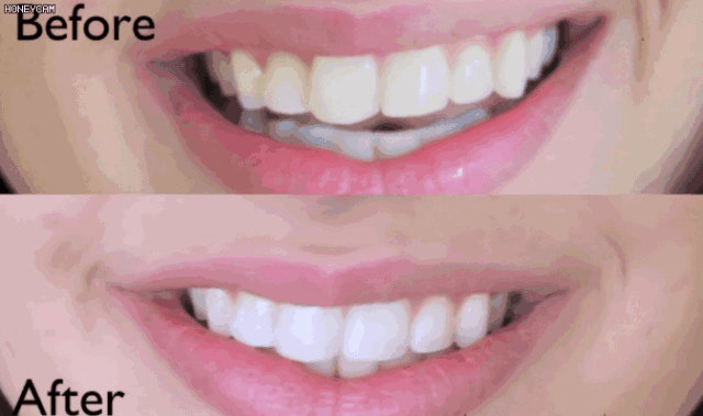 此外,牙齿层次不齐的小伙伴用牙贴的时候难度也蛮大的,不能覆盖所有牙齿,会导致一块黄,一块浅黄。