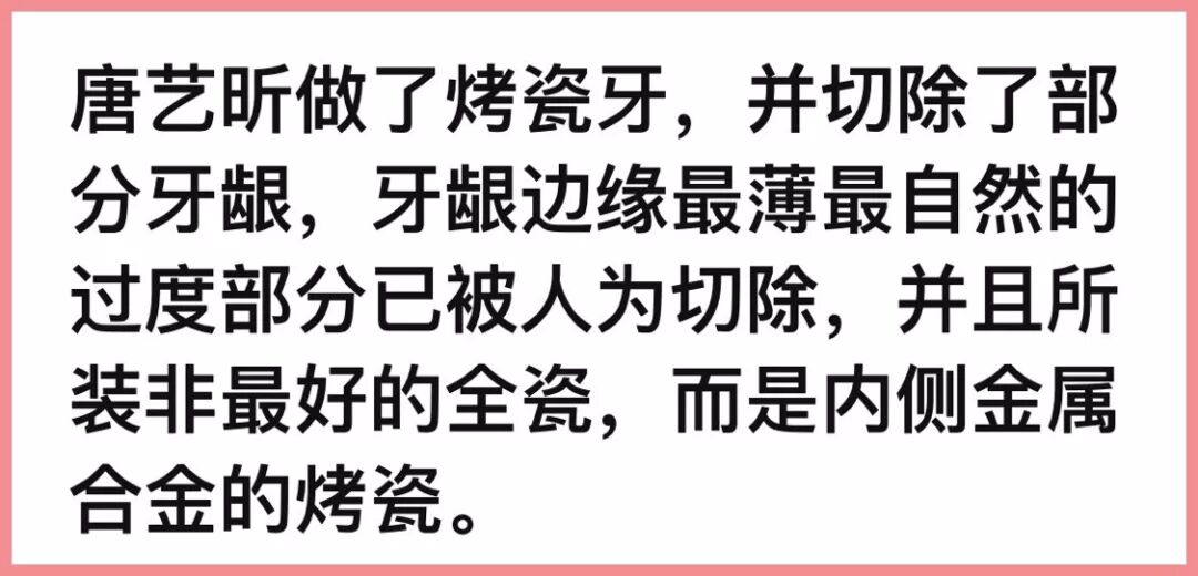 坊间传闻,月底要做新娘的唐艺昕做的就是金属烤瓷牙。