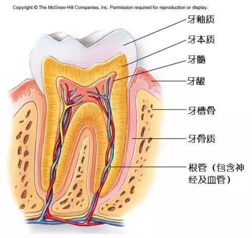 牙齿表面覆盖着一层牙釉质,呈透明或半透明状态,深部为牙本质,呈淡黄色。