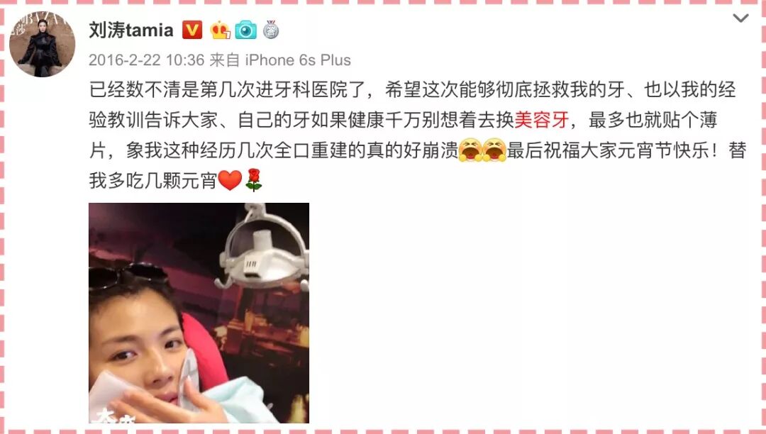 还发了微博奉劝牙齿健康的人谨慎尝试做美容牙!