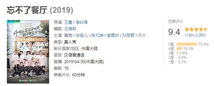无疑,是一万人打出了9.4分的《忘不了餐厅》。