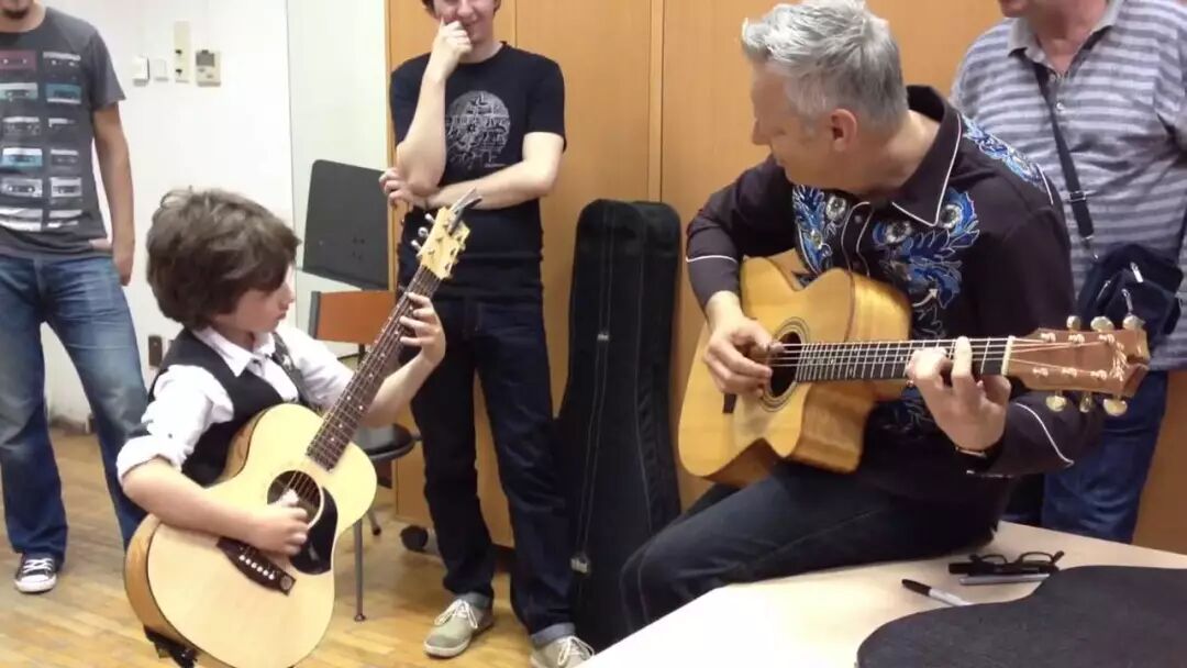 也是8岁这一年,弗兰诺与他的人生偶像,澳大利亚国宝级指弹演奏家,曾经与猫王、MJ合作的世界级吉他大师——汤米·伊曼纽尔(Tommy Emmanuel)同台,在克罗地亚国家音乐厅一起联合演出。