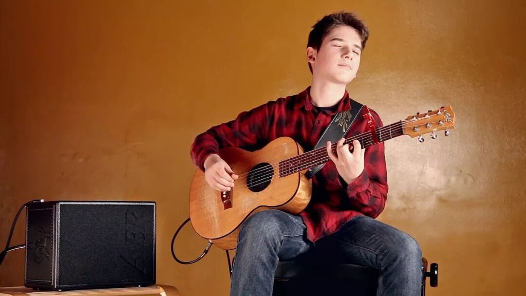 他的手指柔软却有力,弹奏出的音色干净饱满,演奏的时候相当专心,一看就能感觉出,他是个深爱吉他的天才乐手。