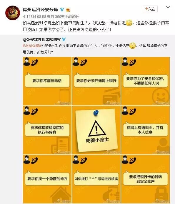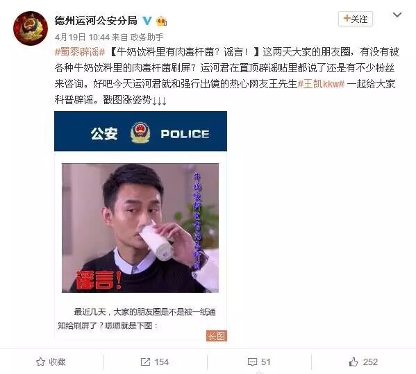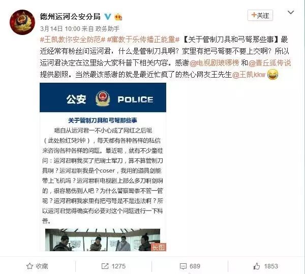除了运河君,其他公安大V们也很拼……王凯最火的微博图片应该是这张