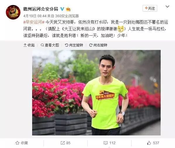 不过,这位自称“运河君”的德州运河公安分局官博能在第一时间把热门剧转化成热门微博,每经小编也是佩服的五体投地!