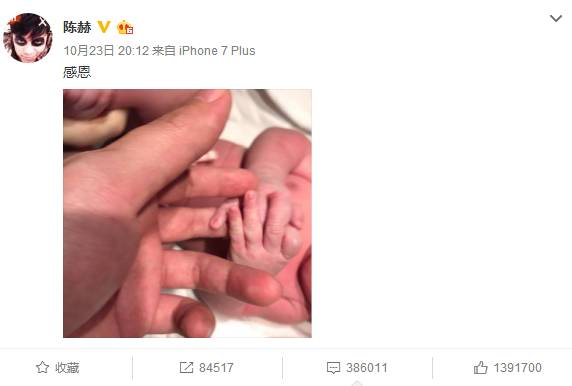 昨天,陈赫发博,配字:感恩。配图:大手握小手。所以,陈赤赤这是当!爹!了!