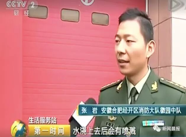 首先消防员用手将1升左右的水分多次泼到起火的金属盘上,这种方式不仅没有灭火,反而导致更大燃烧。
