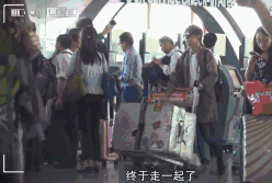 当时,王菁率先一人手推行李箱走出行李厅,在外等候的何炅助理赶紧上前接过行李。