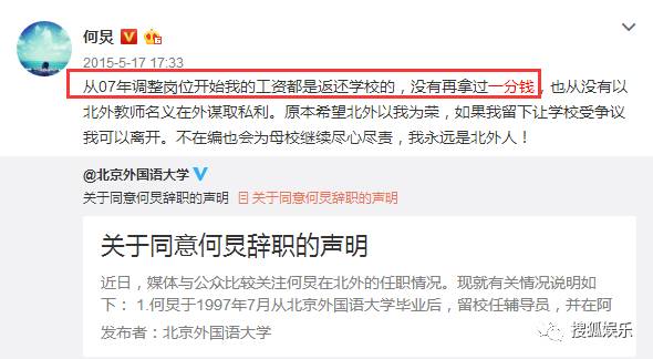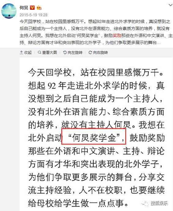 但为了不给母校抹黑,他还是直接辞职了,并在北外启动了何炅奖学金。