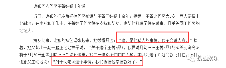 谢娜曾对媒体讲过:(何老师结婚十年说)这是何老师的私事,我们祝福他幸福就好了。