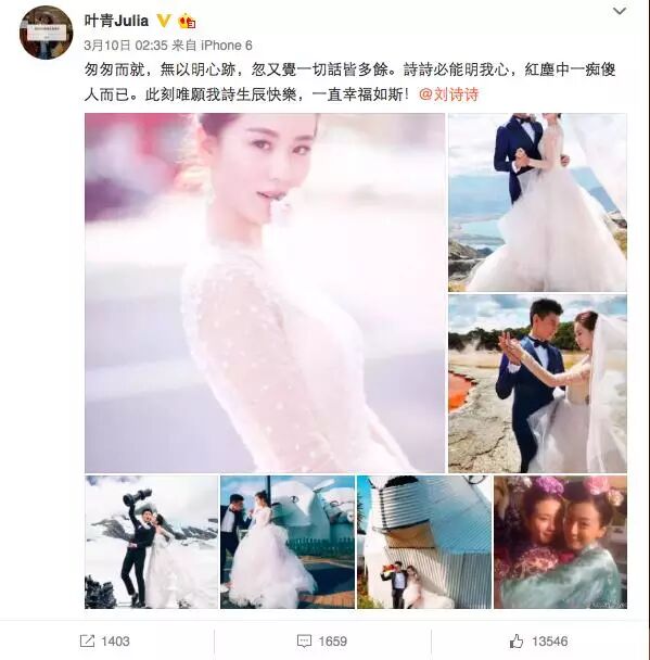 但这个傻姑娘还是在微博上祝福了刘诗诗。
