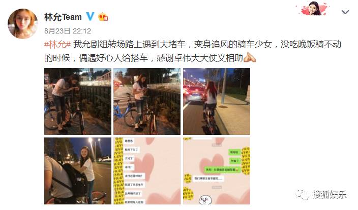 昨日,林允工作室晒出了林允骑单车的照片,并曝料称,林允在剧组转场路上遇到大堵车,于是下车找到一辆共享单车,瞬间变身追风的骑车少女,骑了一段骑不动之后,竟然搭上了正在跟拍她的卓伟的车……
