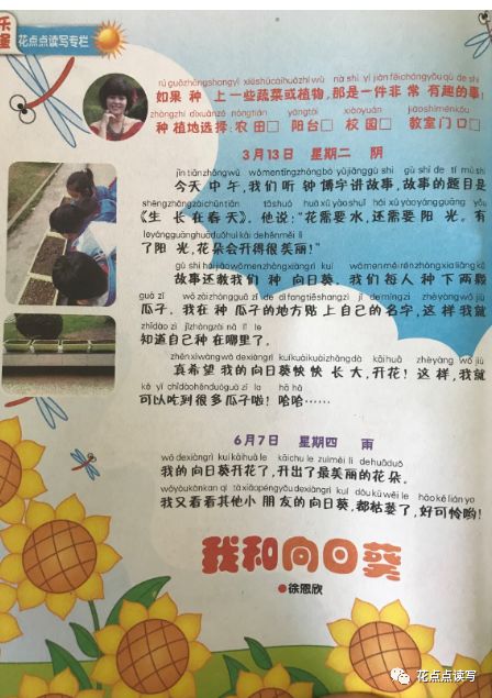 故事妈妈还教我们种植——种向日葵。我们种下两颗瓜子。我在种瓜子的地方贴上了自己的名字,这样我就知道自己种哪里了。