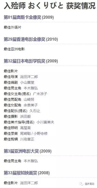 其中,该片在日本就包揽了第32届电影学院奖的最佳影片、最佳导演、最佳编剧、最佳男主、最佳摄影等十项大奖。