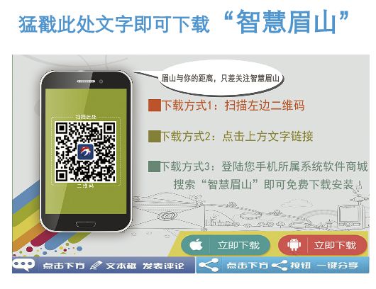 眉山广播电视台手机客户端智慧眉山APP,创建于2014年12月底,是眉山市委市政府、市广播电视台倾力打造的手机新闻客户端,也是眉山首个官方掌上新闻平台。目前共推出新闻、直播、点播、活动、美食、旅游等15个模块。截止2017年3月,“智慧眉山”粉丝量达到15万多人,已成为眉山市民最重要的新闻信息传播中心、生活服务助手与智慧城市服务端。