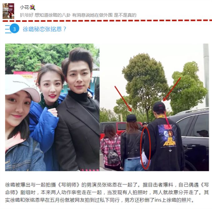 徐璐和张铭恩的恋情瓜,扒爷去年年中就说过了~当时是两人在同剧组拍戏被网友偶遇,结果两人为了避嫌还刻意“分开走”,但张铭恩偷偷摸摸地发的那些“甜ins”还是早早就曝光了这二位了~
