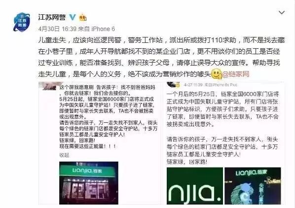 此外,对于之前对于链家门店成为中国失联儿童守护站的一篇报道中存在错误引用的情况,网警也进行了辟谣——“每年中国有20万儿童失踪”,这一数字早就被证实为谣言。
