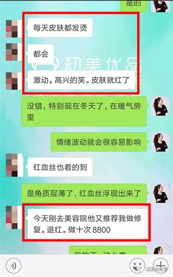 又一次美容院推荐她做修复,10次要花费8800元,妹妹觉得已经花了那么多钱,还是没有效果,这次有点犹豫了,于是找到了李霞护肤老师。