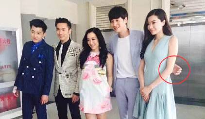 张杰在与谢娜合影时,大方地把手放在老婆肩膀上。而与邓紫棋合影时,则把手背在身后。