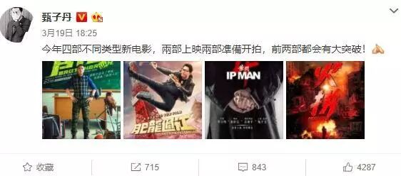 甄子丹在微博透露自己的2018计划