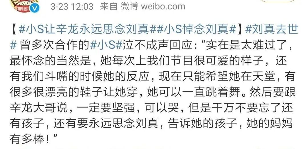 如今只有44岁的刘真去世,一直亏她跳舞不好的小s,哭的泣不成声。