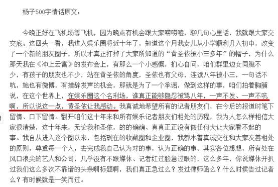 然而,2015年杨子父亲去世,黄圣依带着儿子跪灵堂,杨子写长微博感谢黄圣依并曝光了两人关系,“隐忍被骂八年,一句话不吭,让我很感动。”