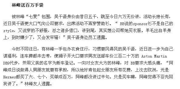 还有知情媒体人爆料:“潘霜霜和杂志达成了一份协议,潘霜霜提供爆料内容,而周刊需提供不少于四次的封面新闻位置作为‘交换’。潘霜霜希望报道刊登的除了林峰的床照外,最重要的还是大量潘霜霜的性感美图,为她打响知名度。”
