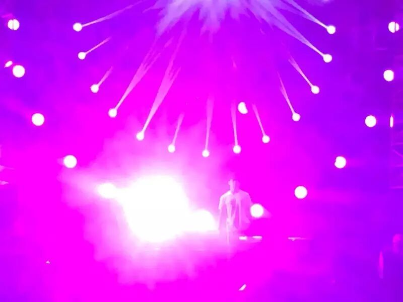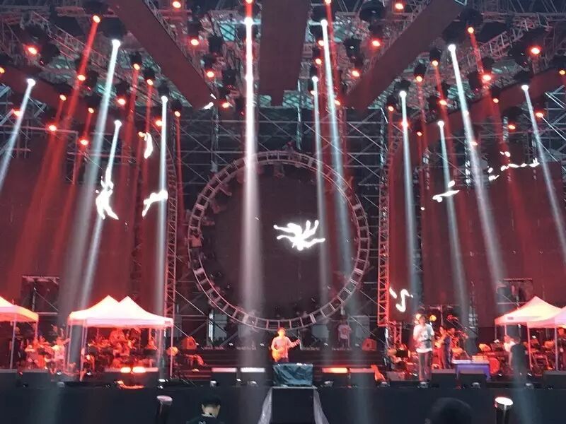 就是《我是歌手》里每次歌手出场都把眼瞎眼的那个光芒万丈的灯光效果。不过,这次只是作为背景效果,歌手出场并不从里面走出来,而是改成升降台从舞台下面升起来。