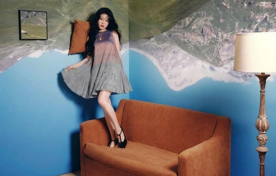 这组大片拍在北京的摄影棚,背景是人工的雪。