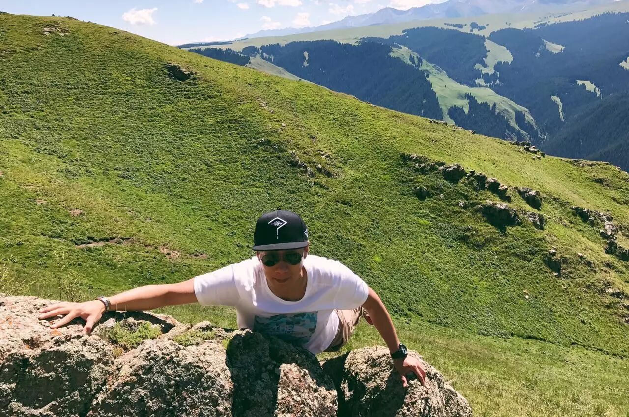 要拍出攀爬悬崖峭壁的感觉(注意我的脚是悬空的!):