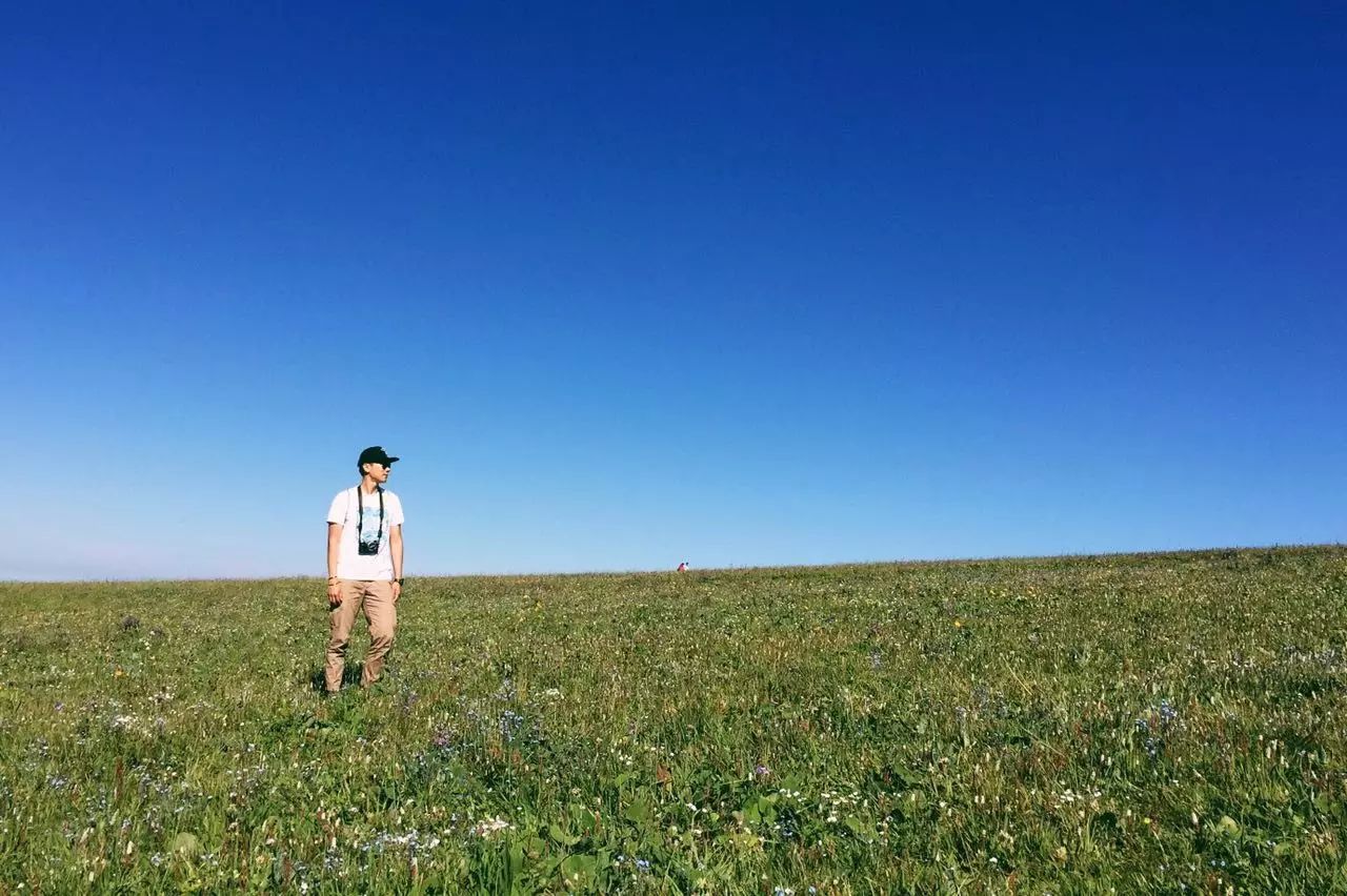 这条徒步路线沿途已经铺好了路,并不危险也不难走。只是草原上一路没有遮盖。