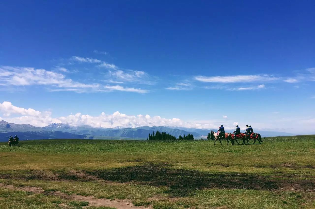 山上住着放牧的哈萨克族,依山傍水,骑马放羊,就是个世外桃源。