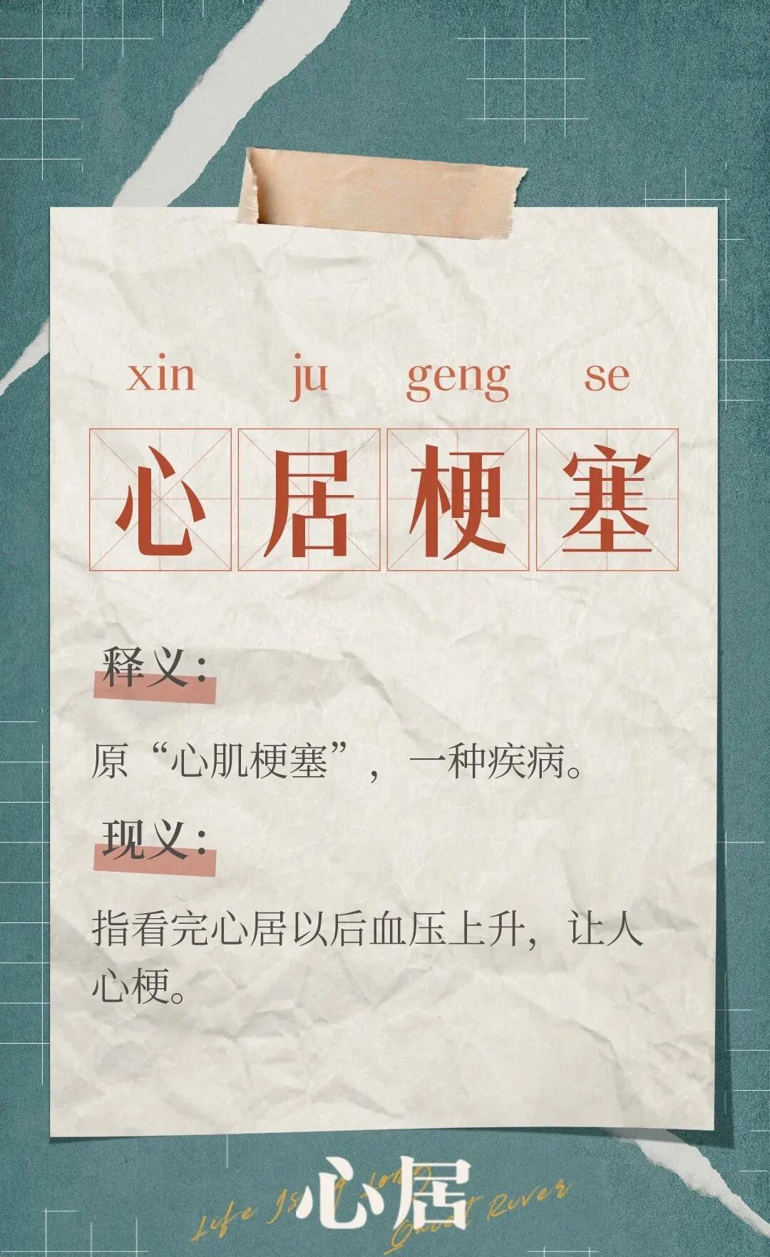意思是,看完《心居》以后血压上升,让人心梗。