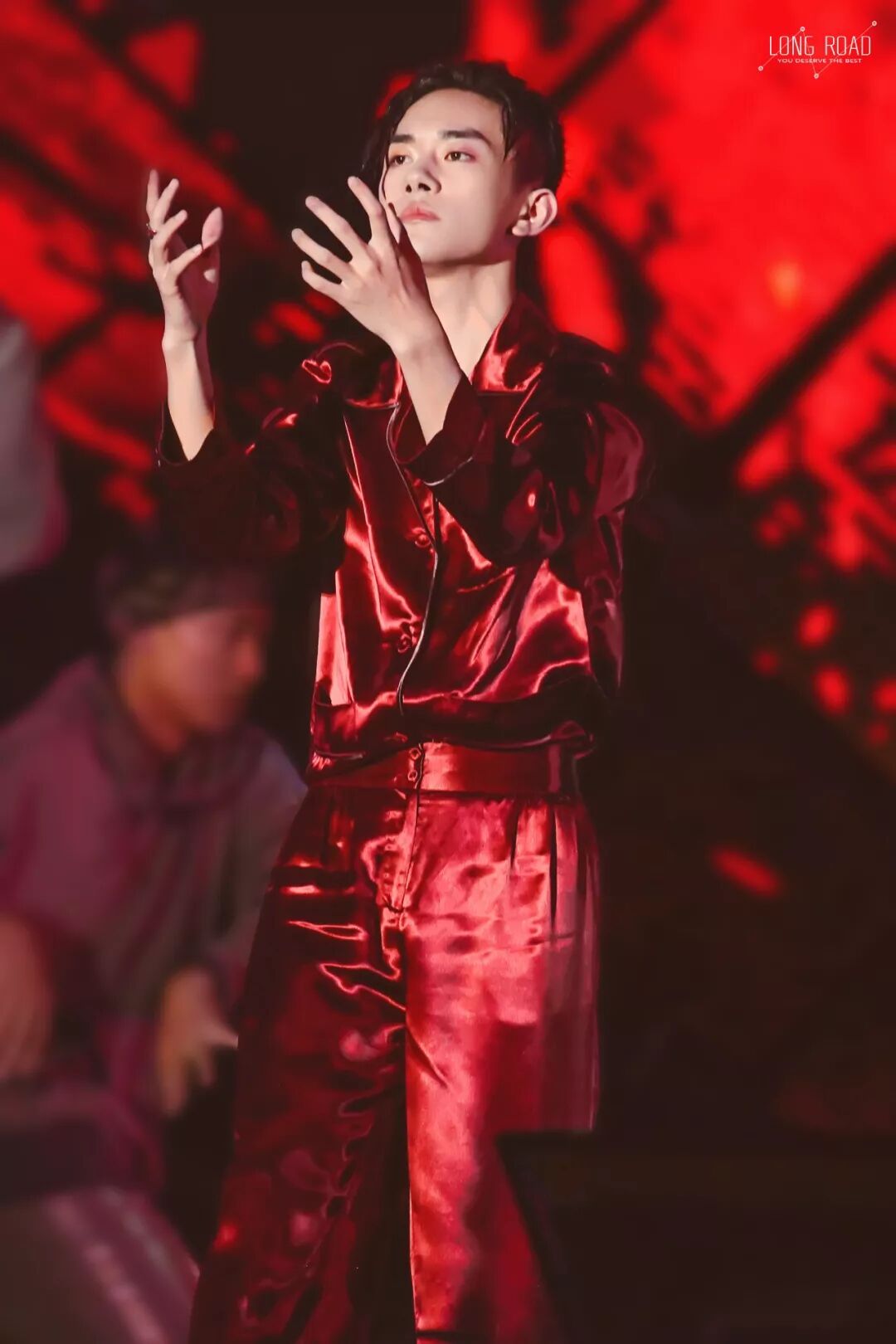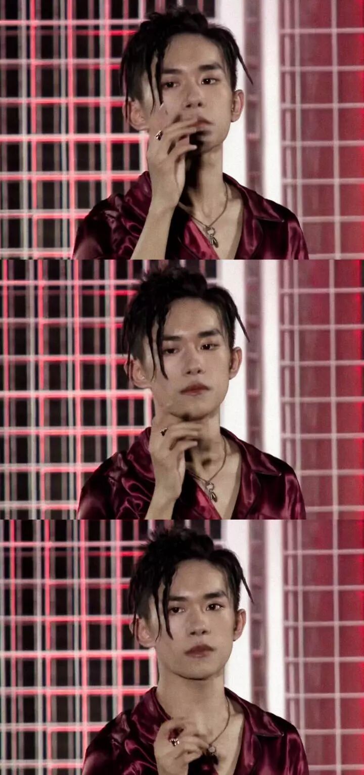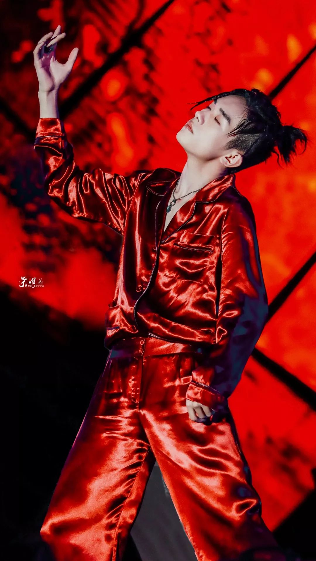 燃烧的不只是半壁红色,还有台上天王雏形已具的易烊千玺。酒红色绸质睡衣散发优雅,头上的脏辫透着野性,躯体动作恰当诠释,何为艺术。