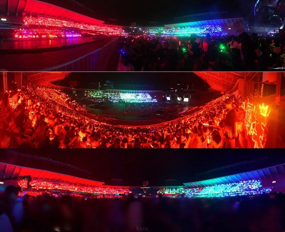 2018年8月24日晚19时30分,北京的天色暗了下来,工体的照明灯熄灭。只见一方露出星星点点的红光,“星星之火,可以燎原”,随后越来越多的红色亮起,像是宇宙中爆开的红色星球。也不过是这些荧荧星火竟染红了天色,衬得工体仿佛是着了火光。